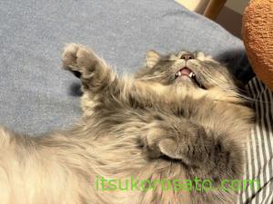 シャンプーされなかったさとは、のびのびお昼寝。